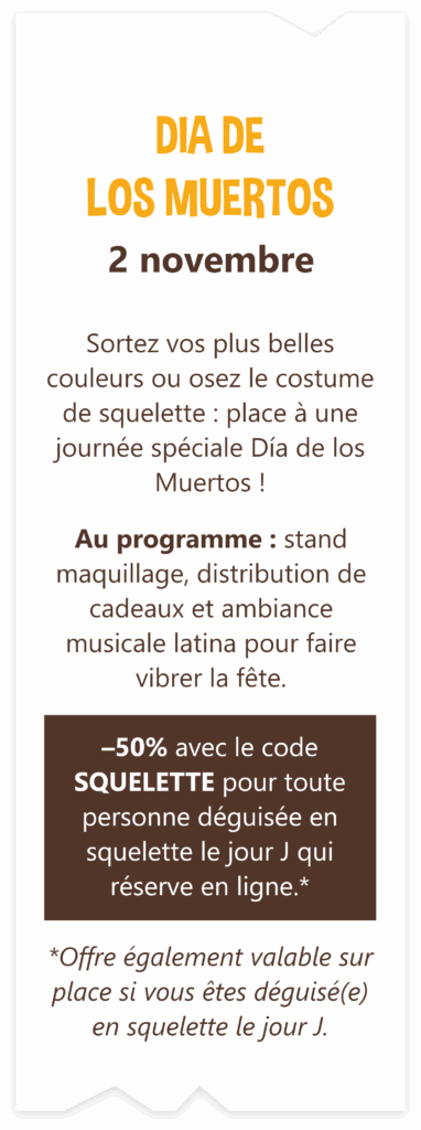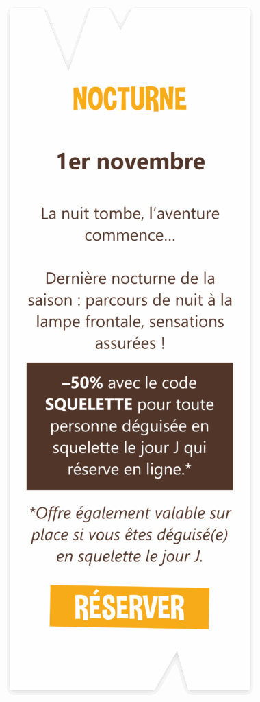 Votre parc France Aventures Saint-Étienne vous accueille pendant 3 jours dans une ambiance frissonnante pour toute la famille ! De nombreuses activités au sol thématisées Halloween et de multiples surprises vous attendent.
